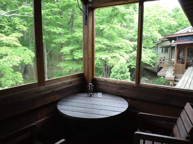 今の時期は、ツヤツヤの新緑を眺めながら、お食事やコーヒーが楽しめます。
